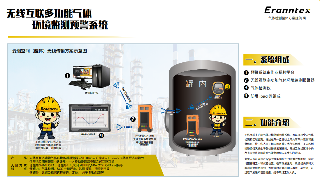 其中,逸云天的无线互联受限空间监测气体预警系统技术方案为油罐清罐作业过程提供有害、易燃易爆气体在线检测,可以实时监测可燃气体,氧气及有毒有害气体浓度。而无线互联受限空间监测气体预警系统技术方案,为隧道、涵洞、储物间等受限空间作业提供有毒有害、易燃易爆气体在线检测。