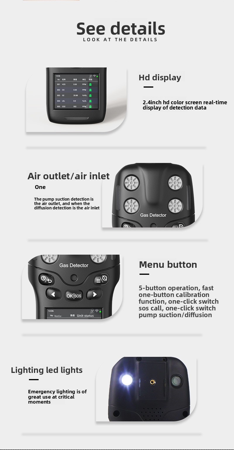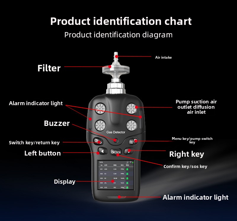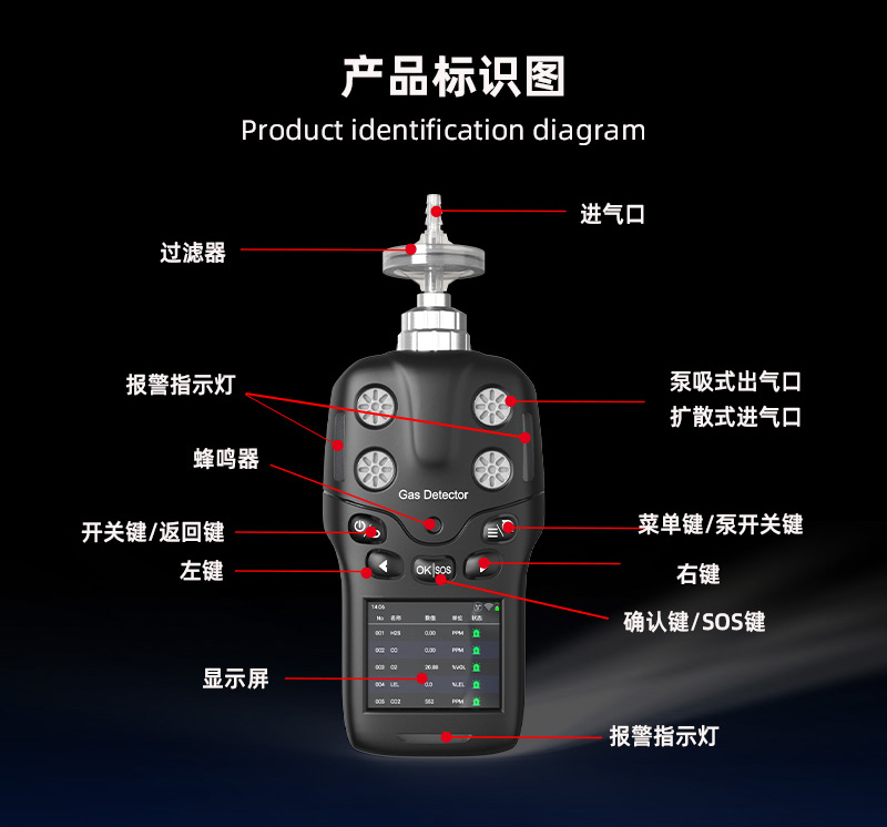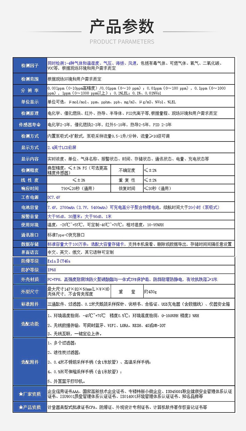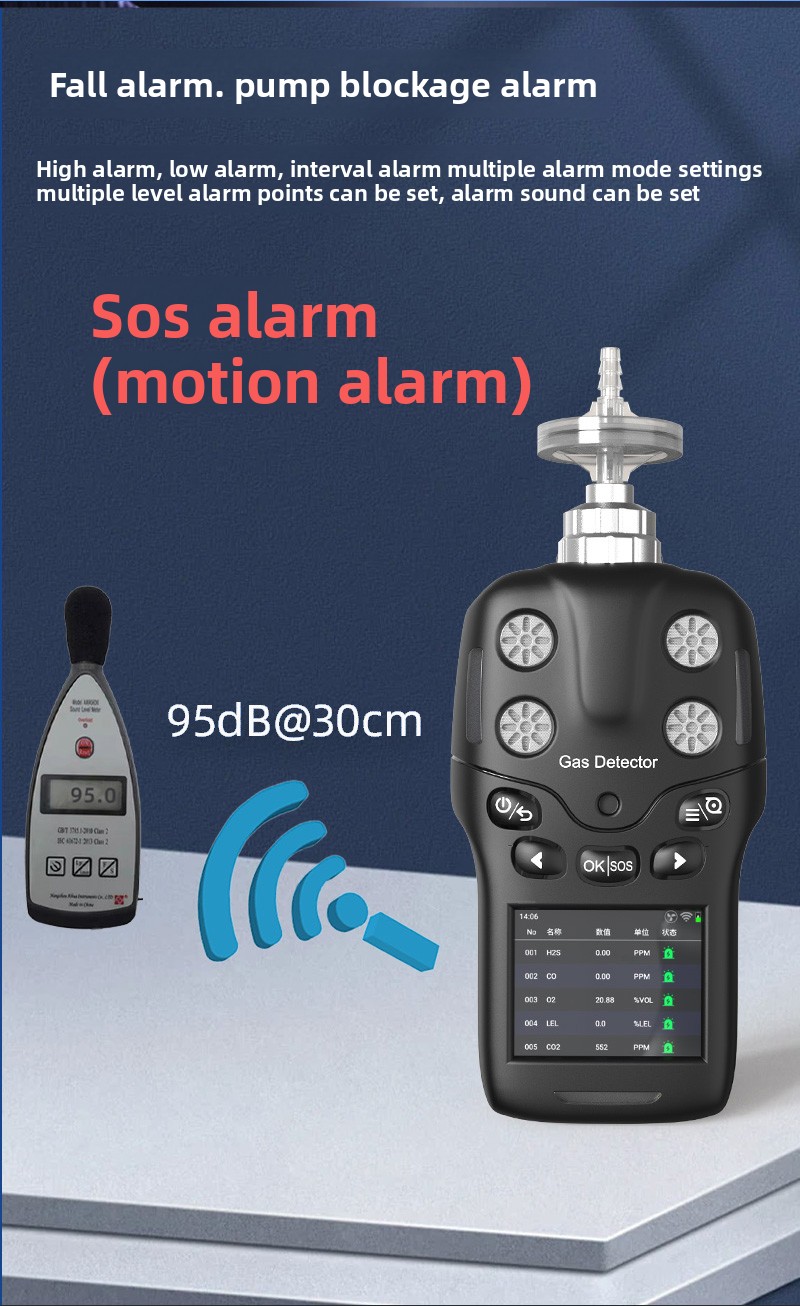 Detection Method: 内置泵吸式+扩散式,泵吸采样流量0.5-1升/分钟,流量≥10级可调