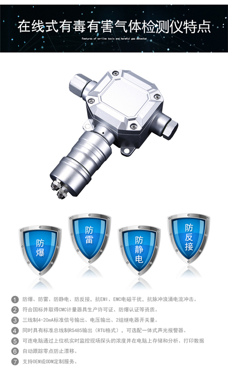 Detection Method: 扩散式测量;可选管道式、流通式、泵吸式测量