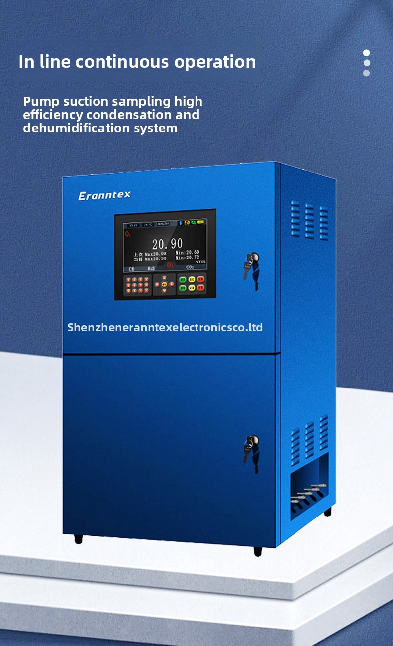 主要原理是:采样单元采集现场的烟气或被测气体,预处理单元对气体进行降温、除湿、过滤粉尘,并将被测气体的温度和湿度恒定在一定范围,气体检测单元检测分析被输送过来的气体,在显示屏上实时显示被测气体浓度,并将数据信号向外传输到PLC或者电脑等终端,也可以通过无线GPRS或网络传输到各地环保局或云服务器,用户再从服务器读取数据,可以实现全球联网监控分析。整个过程为自动化处理,不需人为干预处理。TH-2000-QX+FC气体清洗反吹系统适用于低粉尘、高温度、高湿度场合的气体检测分析,若被测气体的粉尘含量高,需要选配自动反吹系统,否则需要定期手动维护清洗粉尘过滤器。TH-2000-QX+FC气体清洗反吹系统内置双级电子冷凝除湿系统和0.5米精细粉尘过滤取样头(法兰安装),采样距离40米,自动降温、自动排水、过滤焦油。对于易溶于水的气体检测分析和冬天室外结冰环境,防止采样管路结冰,需选择保温和电伴热恒温控制系统。如果对被测气体的干燥度和洁净度要求很高,请选择LB3000系列,含保温和电伴热恒温控制系统、双级高效压缩机水冷除湿系统,可以将气体的露点稳定控制在4℃或5℃。
