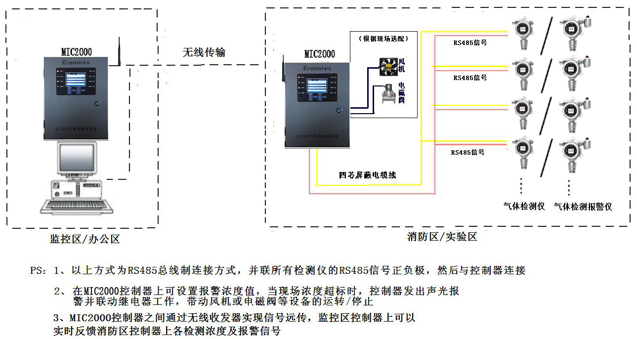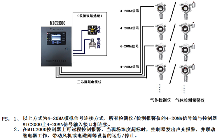 MIC2000 气体报警控制器应用图示: