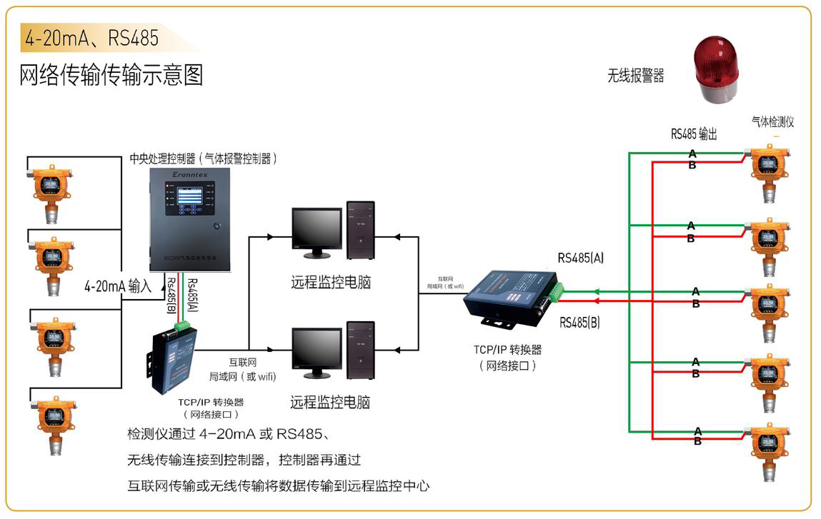 5、气体检测仪/检测报警仪网络传输示意图(4-20MA/RS485信号)